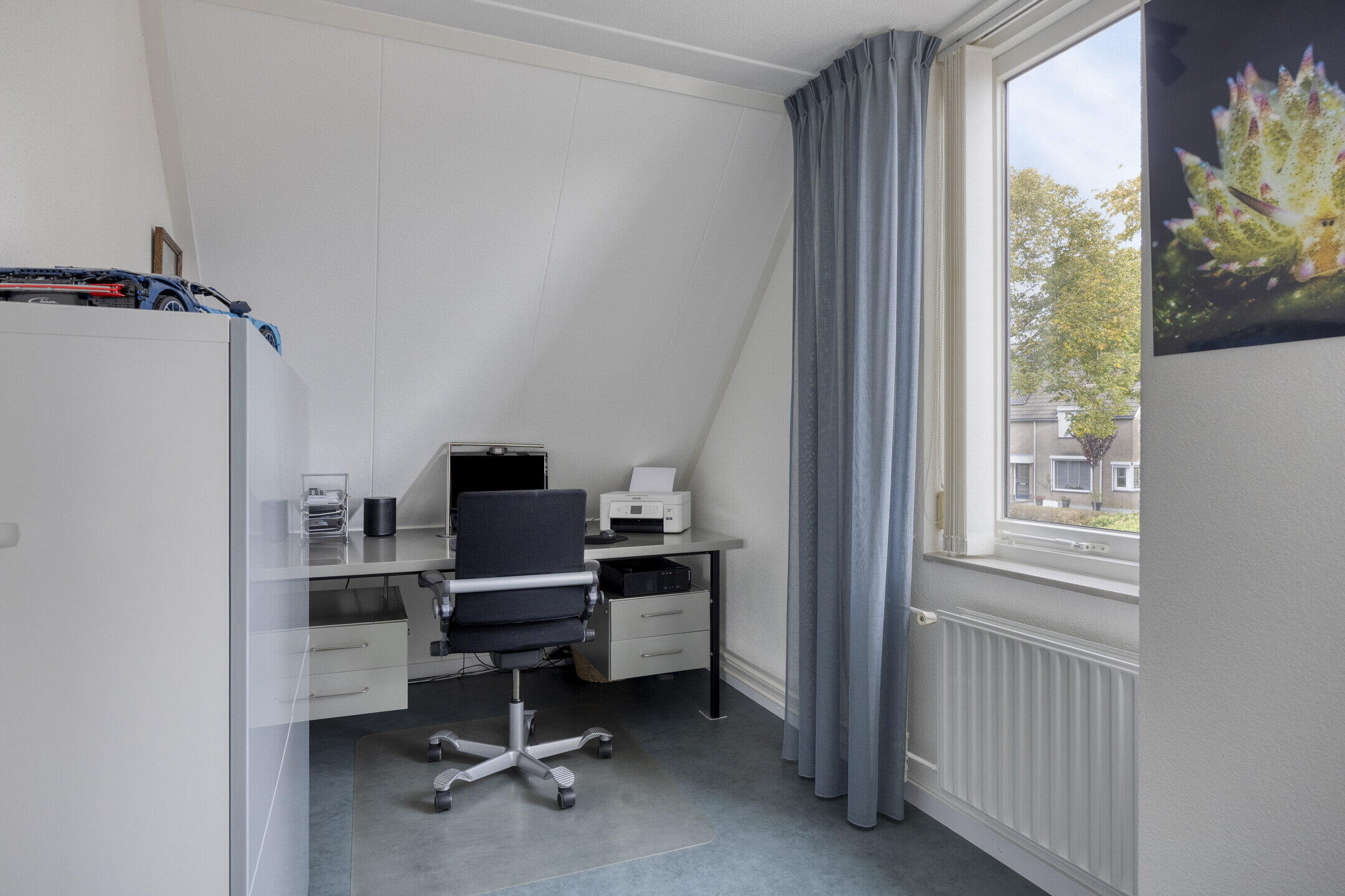 Op de eerste verdieping vind je drie ruime en lichte slaapkamers, waarvan één is voorzien van ingebouwde kasten. De badkamer is modern en netjes afgewerkt, met een inloopdouche, wastafelmeubel en tweede toilet. De tweede verdieping is verrassend ruim: een grote voorzolder én een vierde slaapkamer met meer dan genoeg ruimte voor een logeerkamer, thuiskantoor of tienerkamer. Mogelijkheden genoeg!