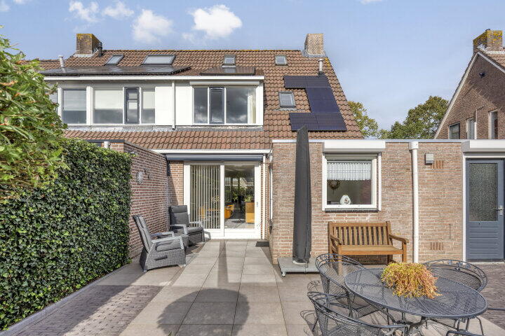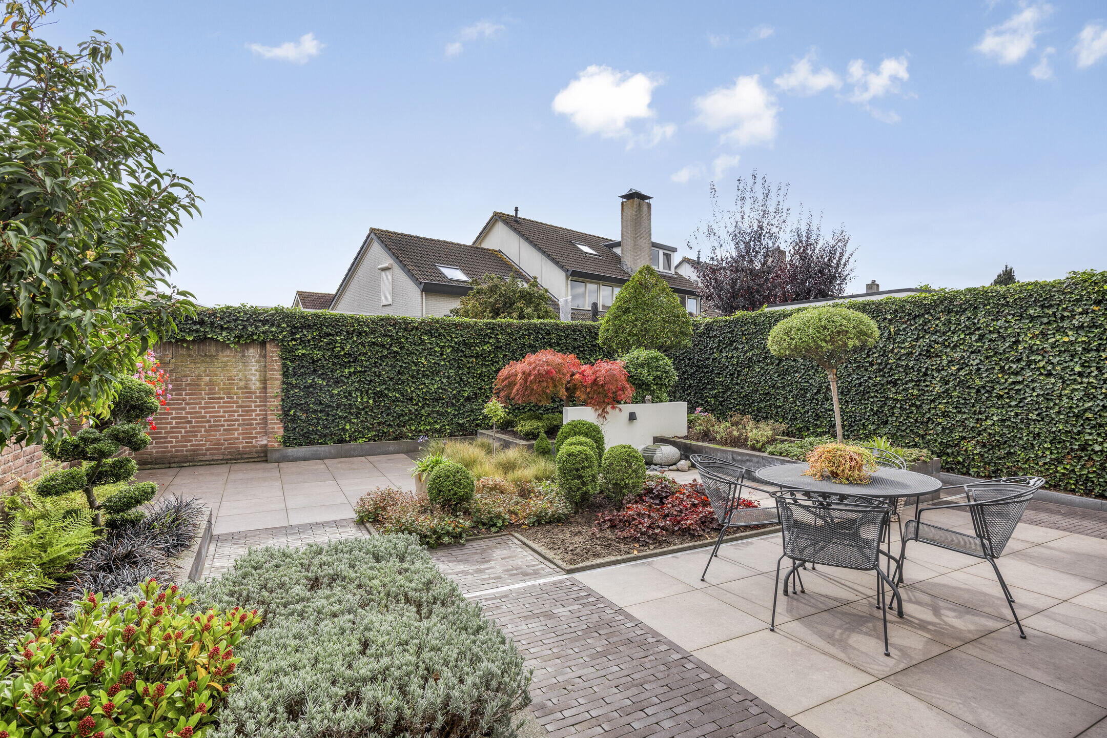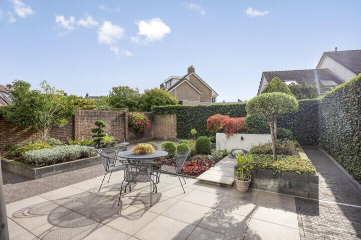 De tuin is strak aangelegd, goed verzorgd en biedt meerdere terrassen om heerlijk te genieten van de zon of juist de schaduw. Groen, sfeervol en met voldoende privacy. Hier heb je echt een fijne buitenruimte om tot rust te komen.