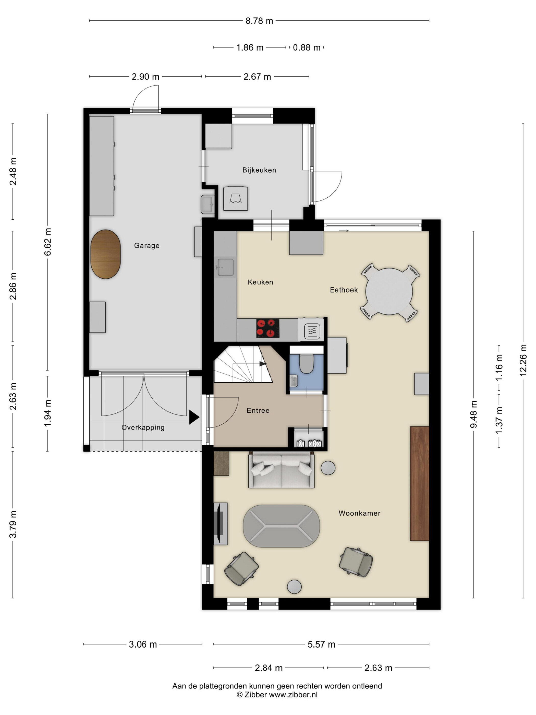 Parkeer je auto eenvoudig op de eigen oprit. Je komt binnen via de hal, waar je direct toegang hebt tot de meterkast, het toilet, de trap naar boven én de woonkamer. Alles netjes en overzichtelijk.
