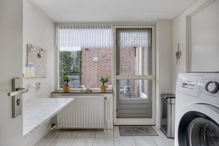 De woonkamer is ruim en heerlijk licht, met volop mogelijkheden qua inrichting. Richt je zithoek gezellig in aan de voorzijde en geniet van de open verbinding met de eettafel bij de schuifpui, perfect voor zomerse avonden met de deur open. De halfopen keuken is strak, modern en praktisch ingericht. Met veel werkruimte én direct contact met de eettafel kook je hier met gemak en gezelligheid. Vanuit de keuken loop je door naar de bijkeuken met aansluitingen voor de wasmachine en droger. Ook hier vind je de toegang tot de tuin én de garage. Superhandig!